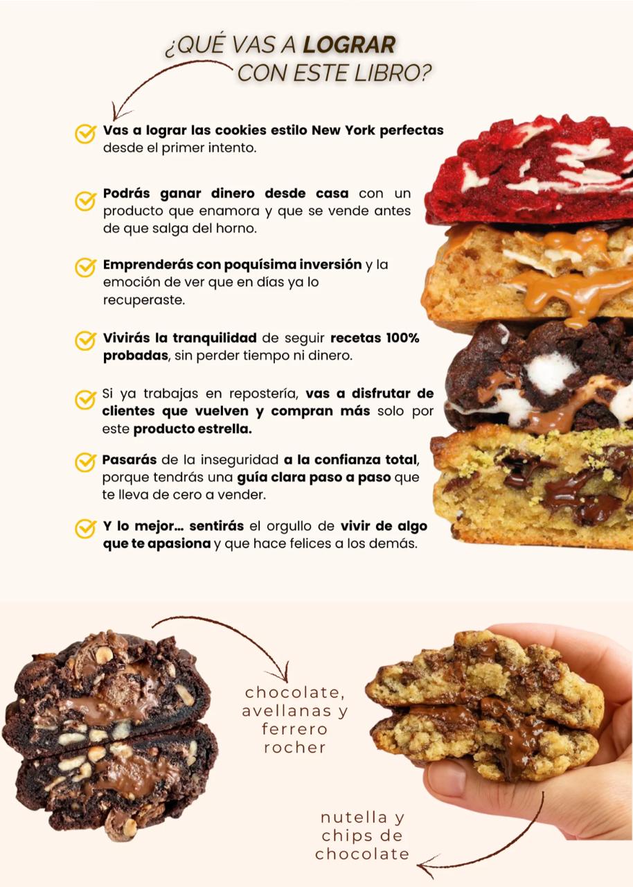 👉 Para nada. Este libro está pensado para que cualquier persona, incluso sin experiencia, pueda hornear cookies irresistibles y transformarlas en un negocio rentable desde cero.