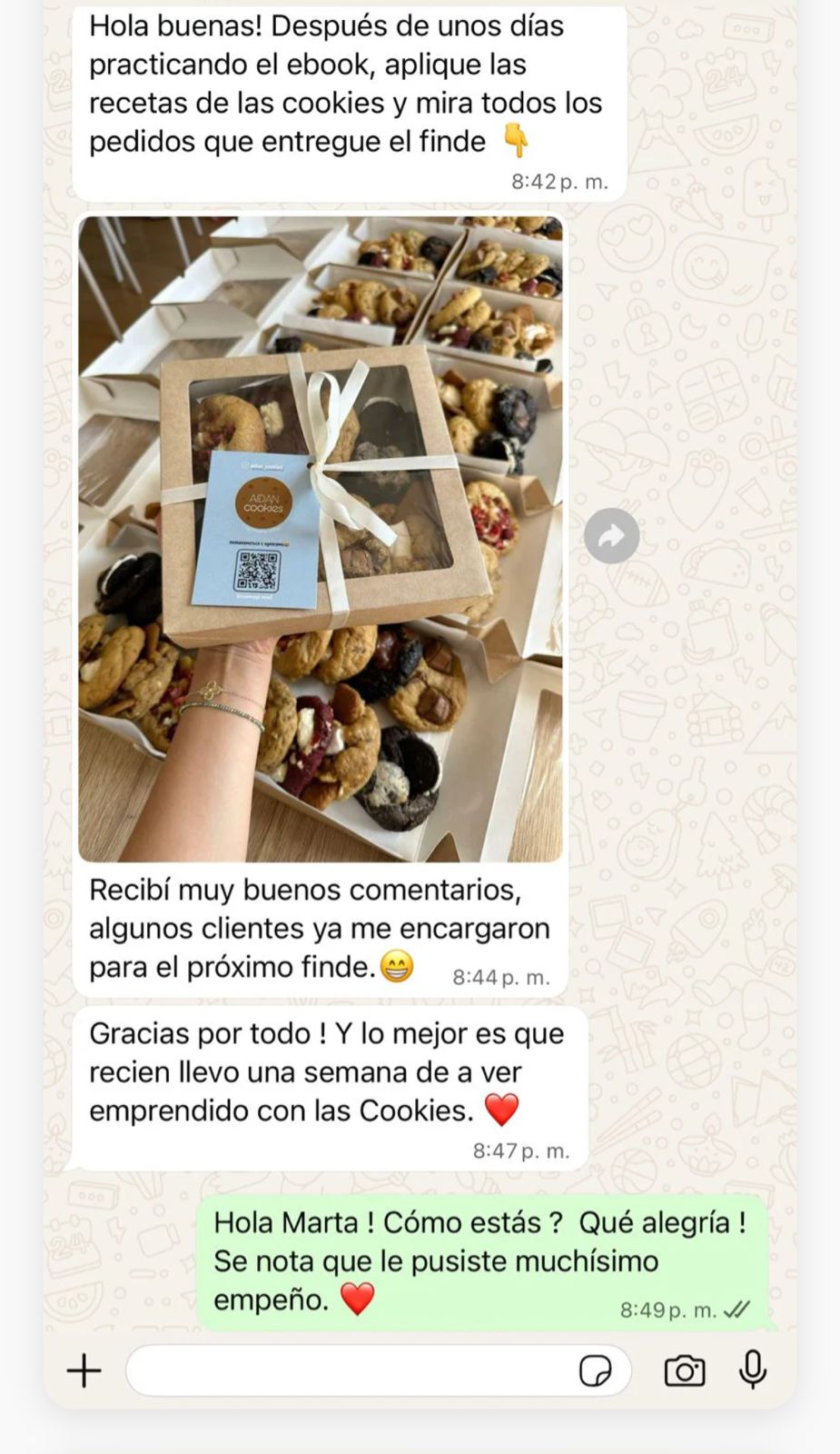 Sabemos que lo más importante para vos no es solo aprender a hacer galletitas y tortas irresistibles… sino empezar a ganar plata con ellas.